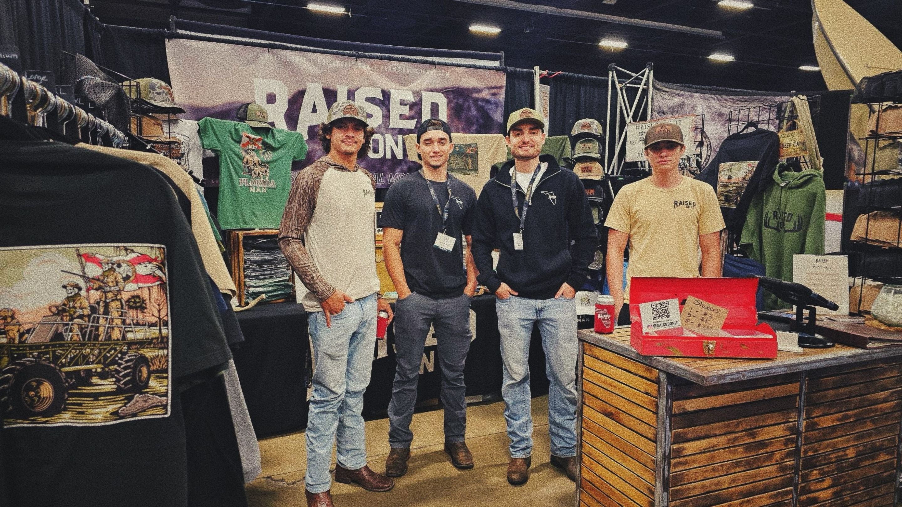 What started with a handful of t-shirts, hand-packed and shipped from the dining room table, has grown into a fast-moving brand with deep roots. Raised On It is the only Florida-born apparel brand that doesn’t just print cool graphics. Our designs are inspired by real moments and carry the legacy of the backroads, boat ramps, and traditions that built us.